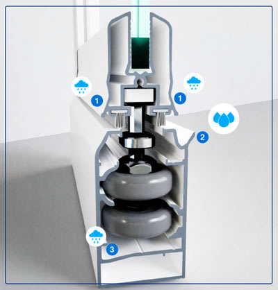 El sistema Balkon10 cuenta con tres métodos de evacuación de agua, diseñados tanto para el drenaje de lluvia como para la eliminación de la condensación generada en el interior del hogar.
